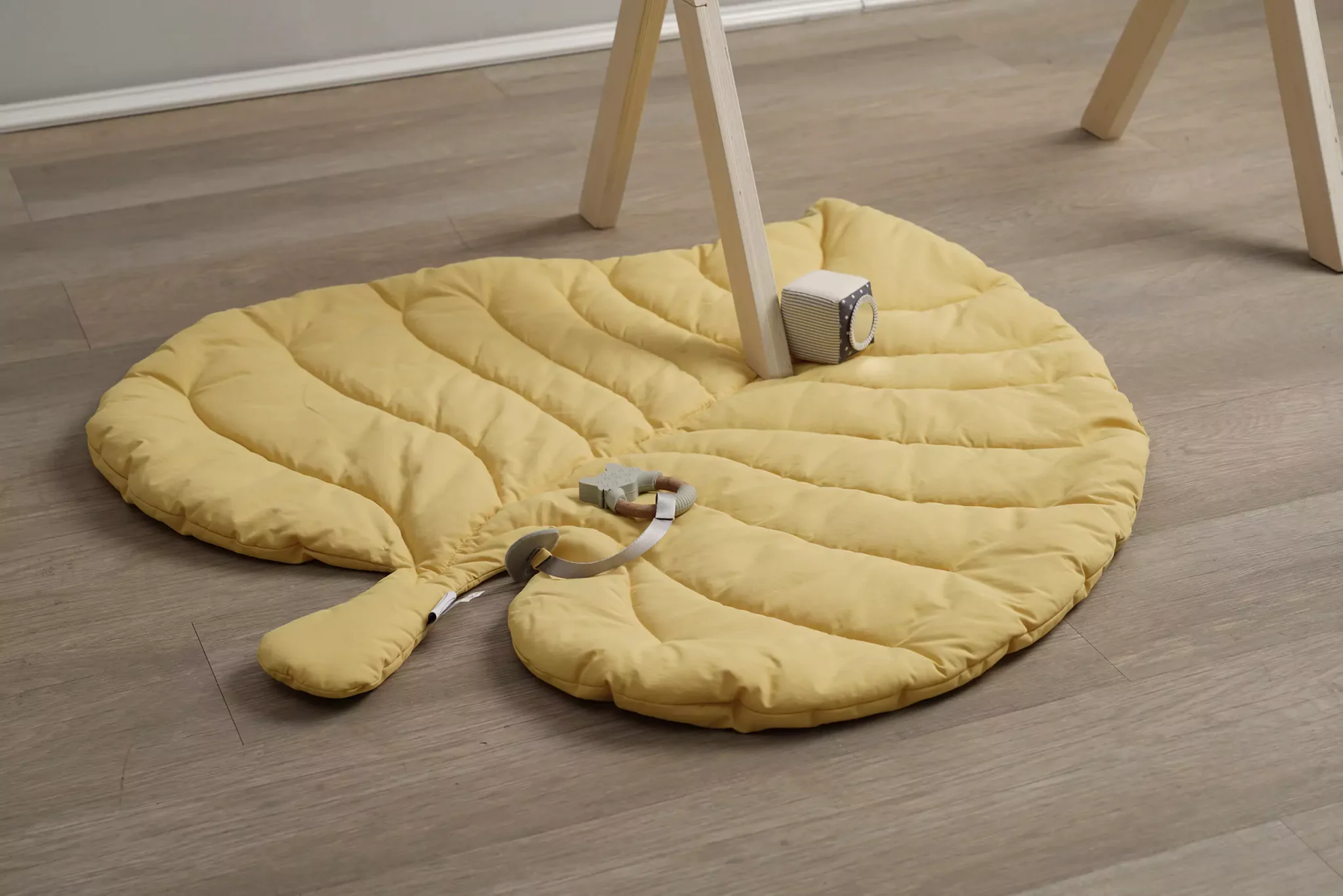 Wooden Play Gym with Leaf Playmat – Mustard